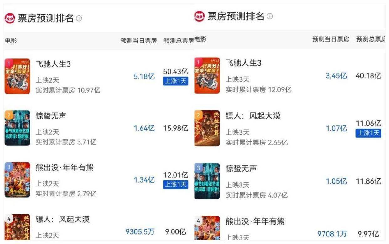大岁首三风浪突变!《镖东说念主》靠硬核打戏和实拍口碑逆跌 从初二9800万跳到破1亿,成为档期独一单日票房不跌反涨的新片。