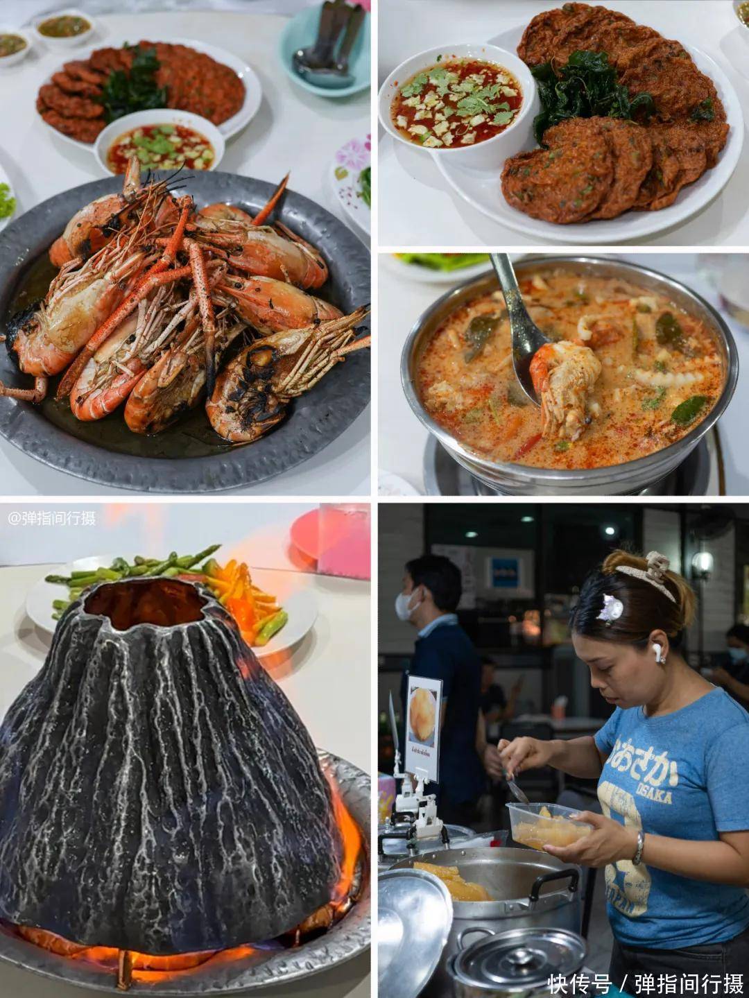 在佛统府的疗愈之旅中,Volcano Prawn Restaurant以独到的火山虾不休成为不能错过的味觉新生。餐厅牌号菜以仿火山风光的“玄武岩”为烹调器具,将400℃高温的岩石置于餐桌中央,现场炙烤簇新虎虾。虾肉在高温下眨眼间锁住汁水,口感弹牙鲜甜,蘸上秘制酸辣酱,辛辣与酸爽交汇,刺激味蕾。搭配香茅柠檬草蒸饭,米饭浸润草本幽香,好意思满中庸浓郁酱汁。这谈菜不仅是好意思食,更是一场息争当然元素与泰式创意的疗愈盛宴。