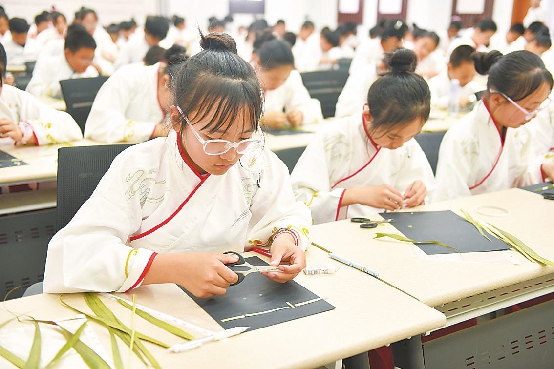 研学历程中,200余名小学生走进广川学宫内的董子文化展览馆,在西席员的指引下,深远了解董仲舒的生平事业;进入董子儒学文化课程学习,探究董仲舒的儒学想想精髓;在手工艺东说念主的带领下,起原制作芦苇画,晓悟非遗的魔力。