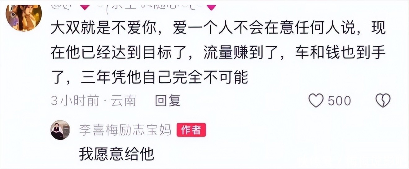 于是就有网友说,李喜梅大双的婚典,便是一场脚本,便是为了赚流量,博眼球。