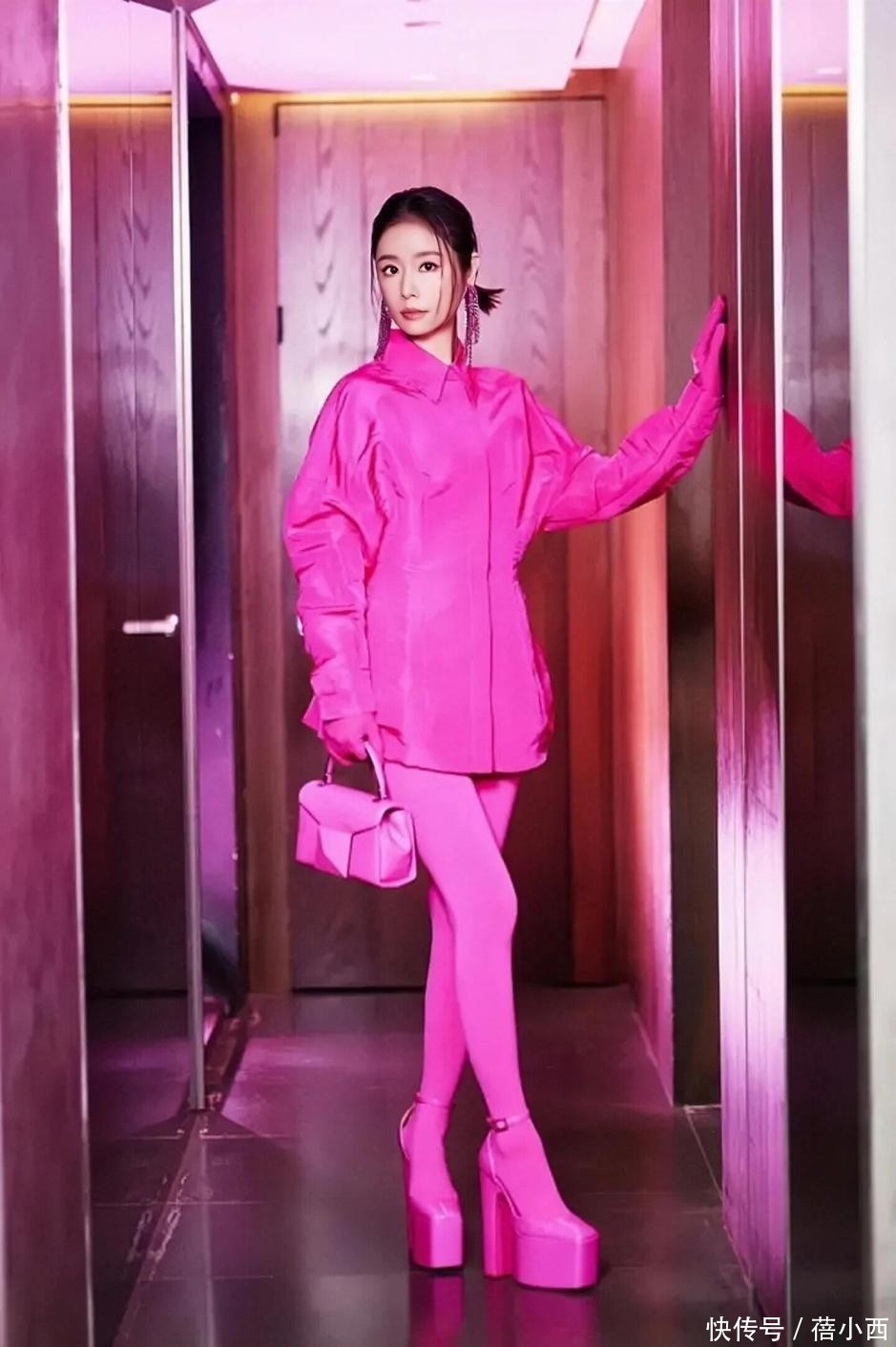 不论是衬衫也曾鞋子,神采均为玫红色,它是一种秀好意思又充满活力的神采,分分钟便能眩惑众人眼神。