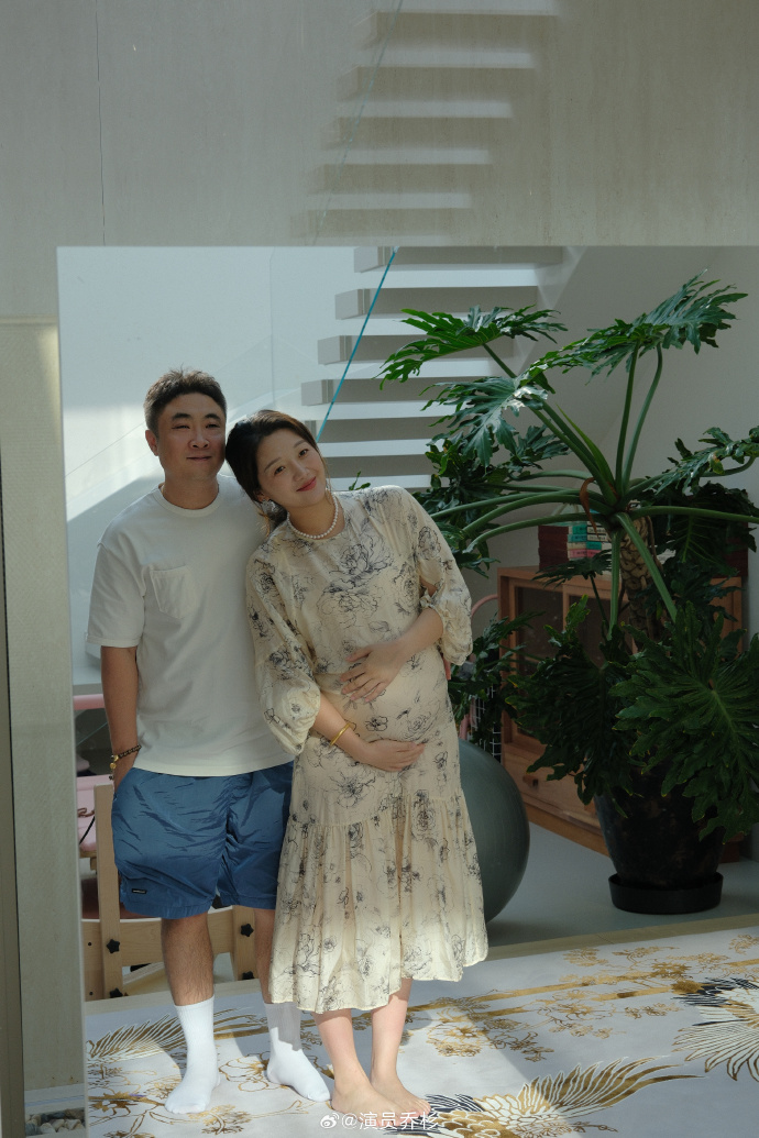 乔杉从死后搂着浑家的大肚,因为肚子确切很大,加上乔杉自己也有点清翠,是以他都没法平直搂住浑家了,哈哈哈。两东说念主看着镜头泄露一样的笑貌,配偶相超足。