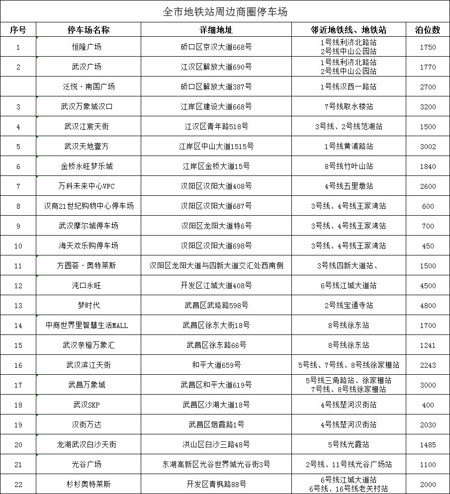 体育东路(太子湖路至神龙通衢)路段、太子湖路(东风通衢至芳草路)路段、车城北路(东风通衢至体育东路)路段、体育路(东风通衢至太子湖路、车城北路至神龙通衢)路段、体育北路(体育路至万达泊车场出进口)、宁康路(神龙通衢至车城北路)路段双向谢却生动车停放。