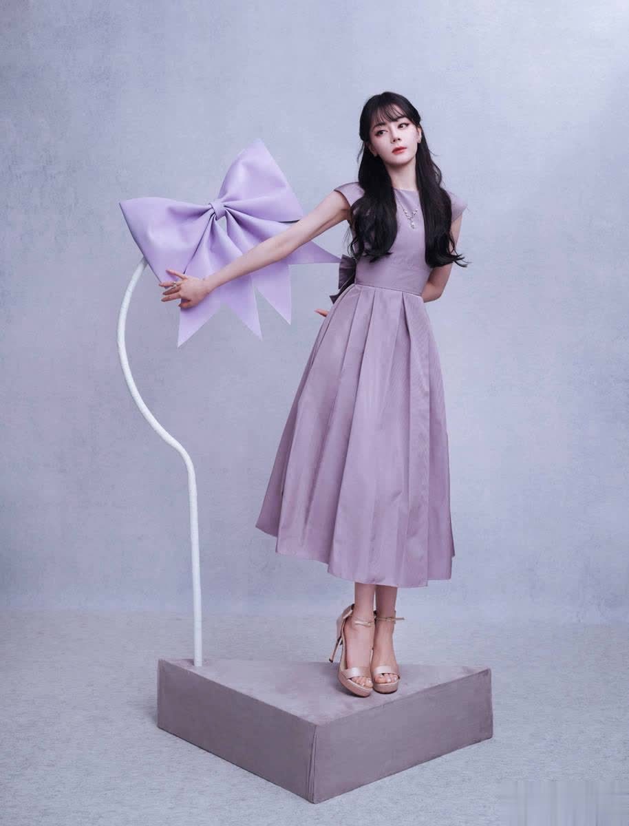 这种审好意思变化挺有兴味。往常女明星拼瘦,当今认真健康的好意思。紫色选得也妙。不是谁皆能撑起这个心境。穿不好显黑,穿对了就贵气。