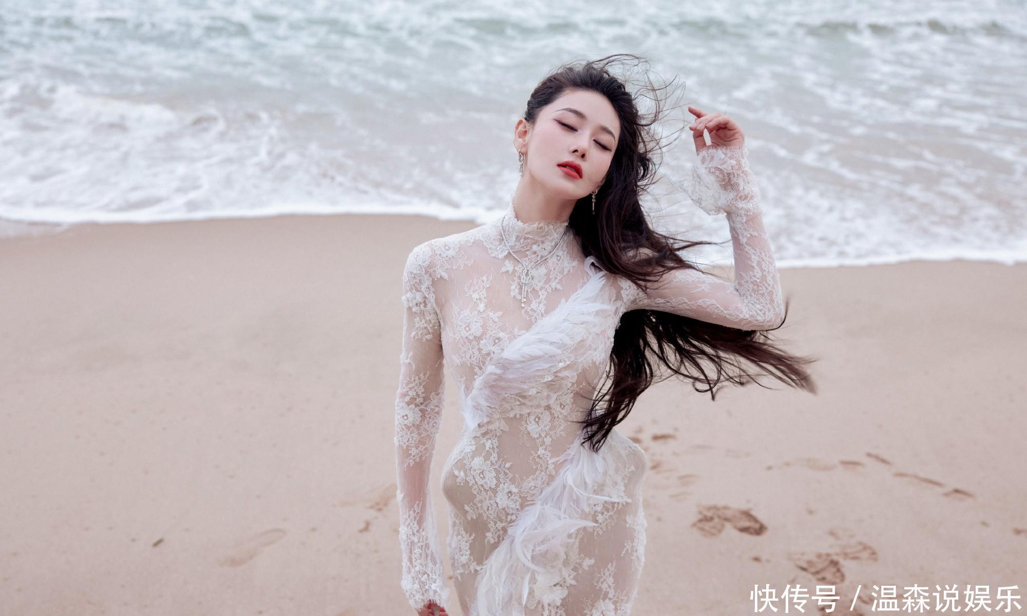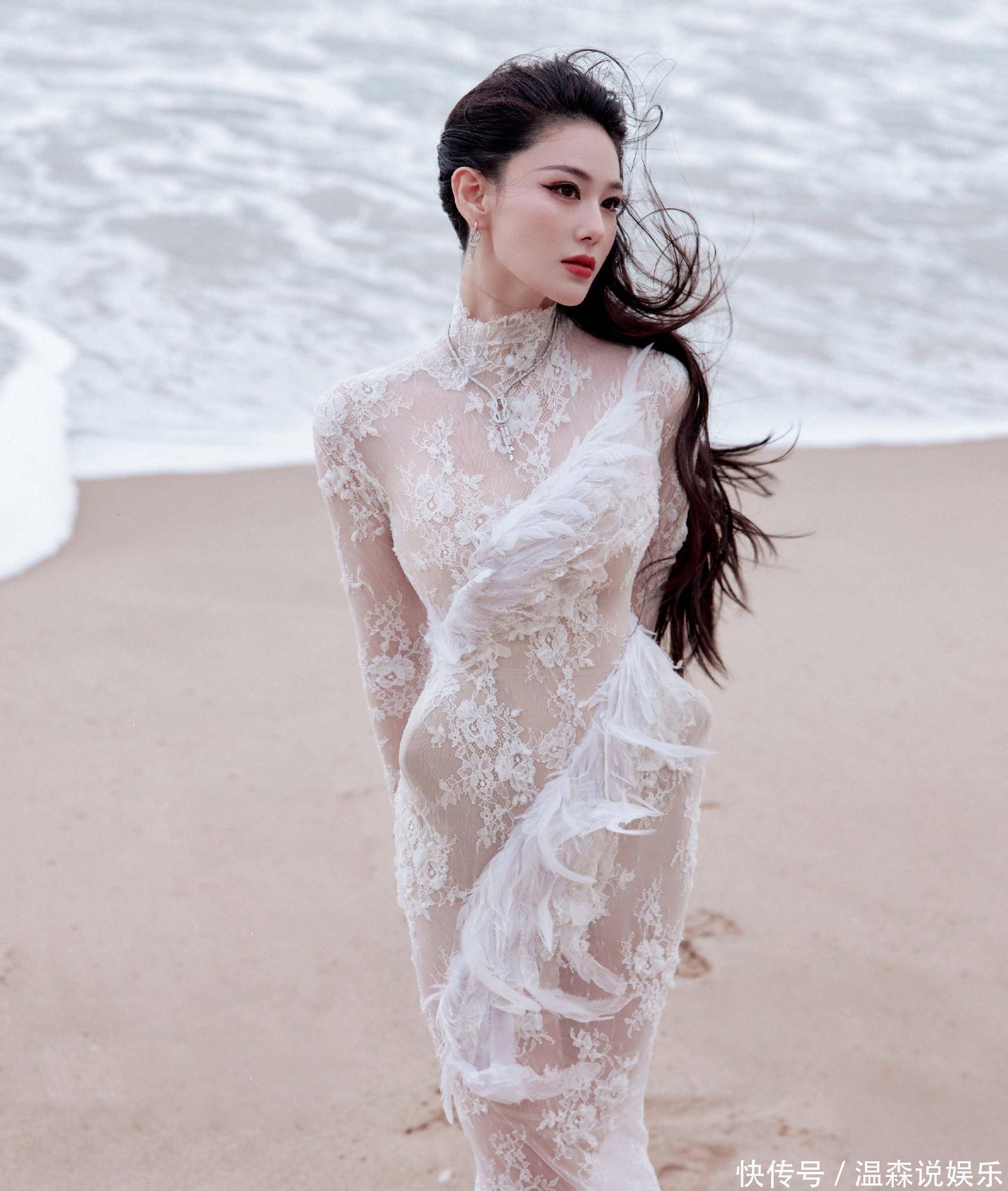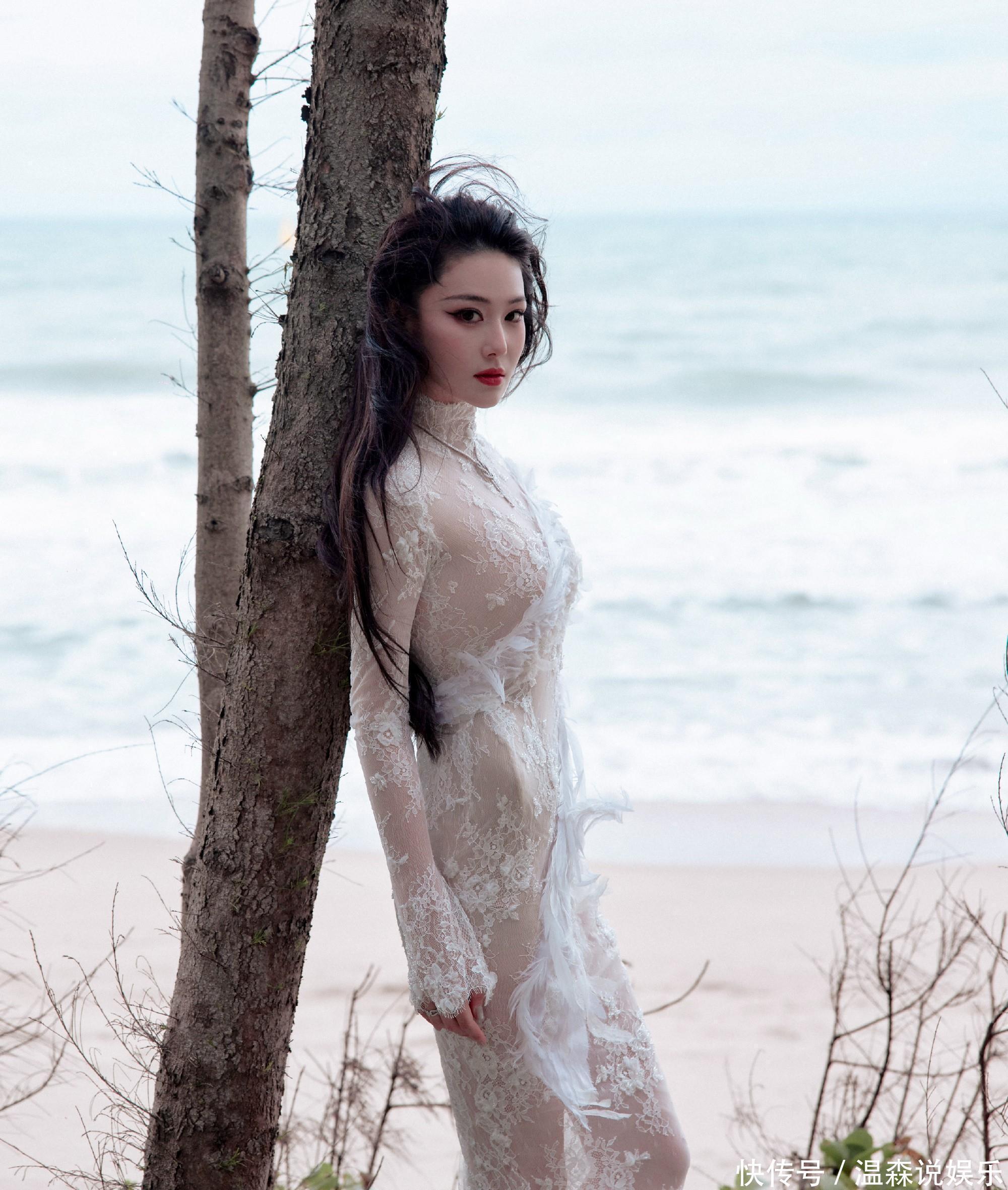 之前只看到张馨予戴着羽毛裙摆的全身照,并莫得看到张馨予单一稔贴身蕾丝裙的相片,职责室晒出的恰是张馨予的单东说念主照,贴身裸色蕾丝裙衬得张馨予女东说念主味透彻,很有野性,头发在风中飞动,性感又迷东说念主。