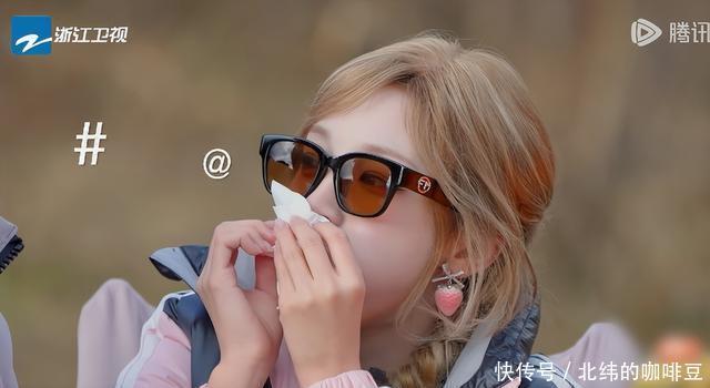 这姐还有形象牵扯,一直用纸巾当着嘴。 都这样还非得上户外综艺,到底让不雅众看什么呢。
