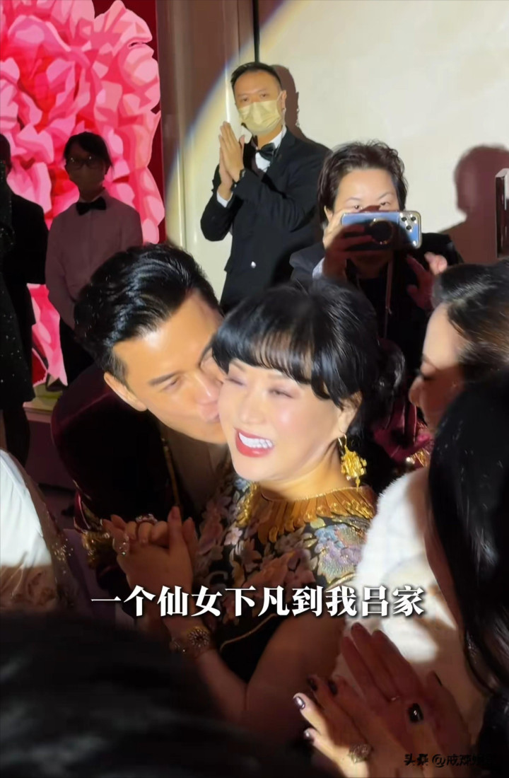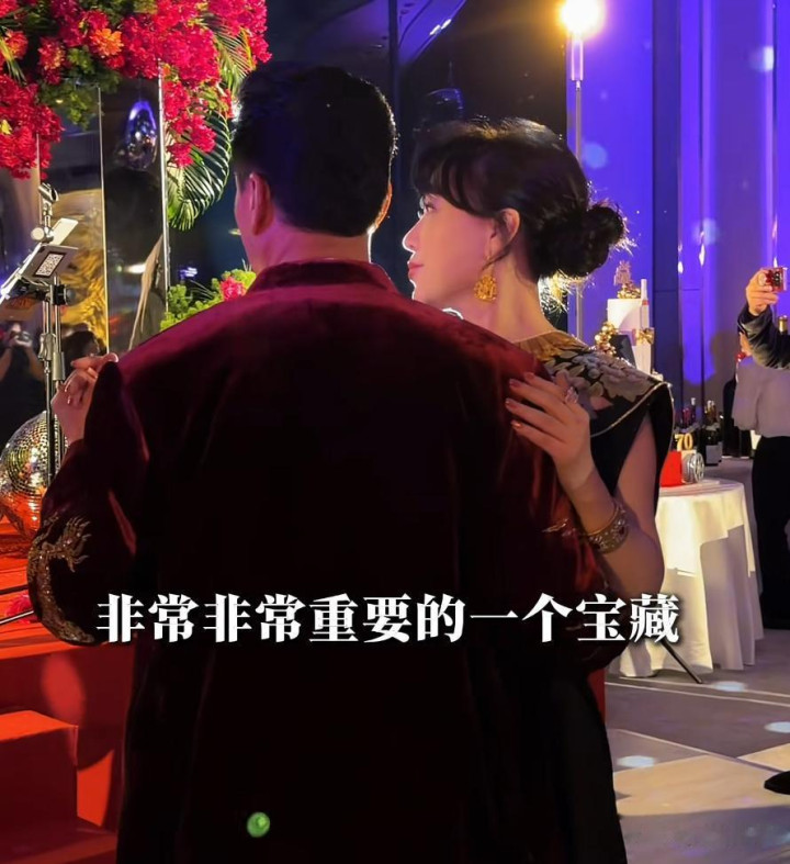 小15岁的杨小娟贵气超卓,盛装打扮了一番,手上脖子上耳朵上都是绚烂的珠宝,24岁的女儿吕善扬也赶来为父亲祝嘏。