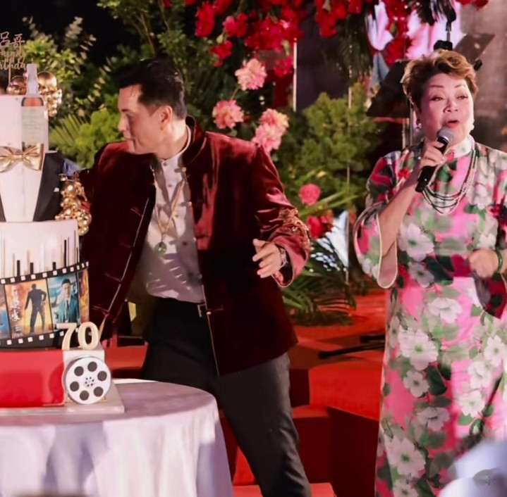 寿宴上有巫启贤亲唱《异常的爱给异常的你》,肥妈唱诞辰歌,甄子丹也绅士范起来,为铁哥们献歌祝嘏。