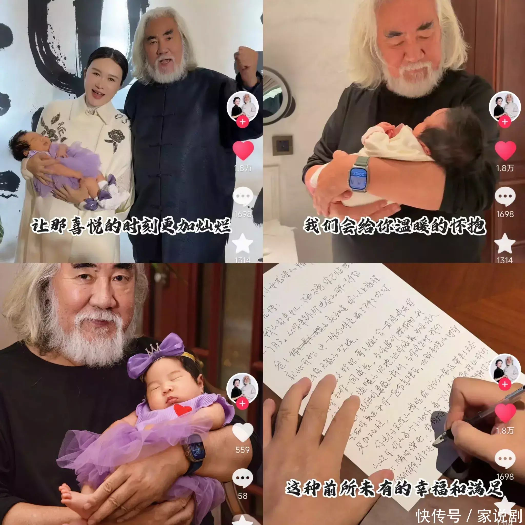 文娱圈像王石这样情况的,么不单是是他。这几天热度比拟高的还有张纪中庸杜星霖老婆,两东说念主的四胎男儿刚刚朔月,张纪中这位实打实的“老父亲”更是写了一封亲笔信送给男儿,字里行间充满了对男儿的祝颂与醉心。