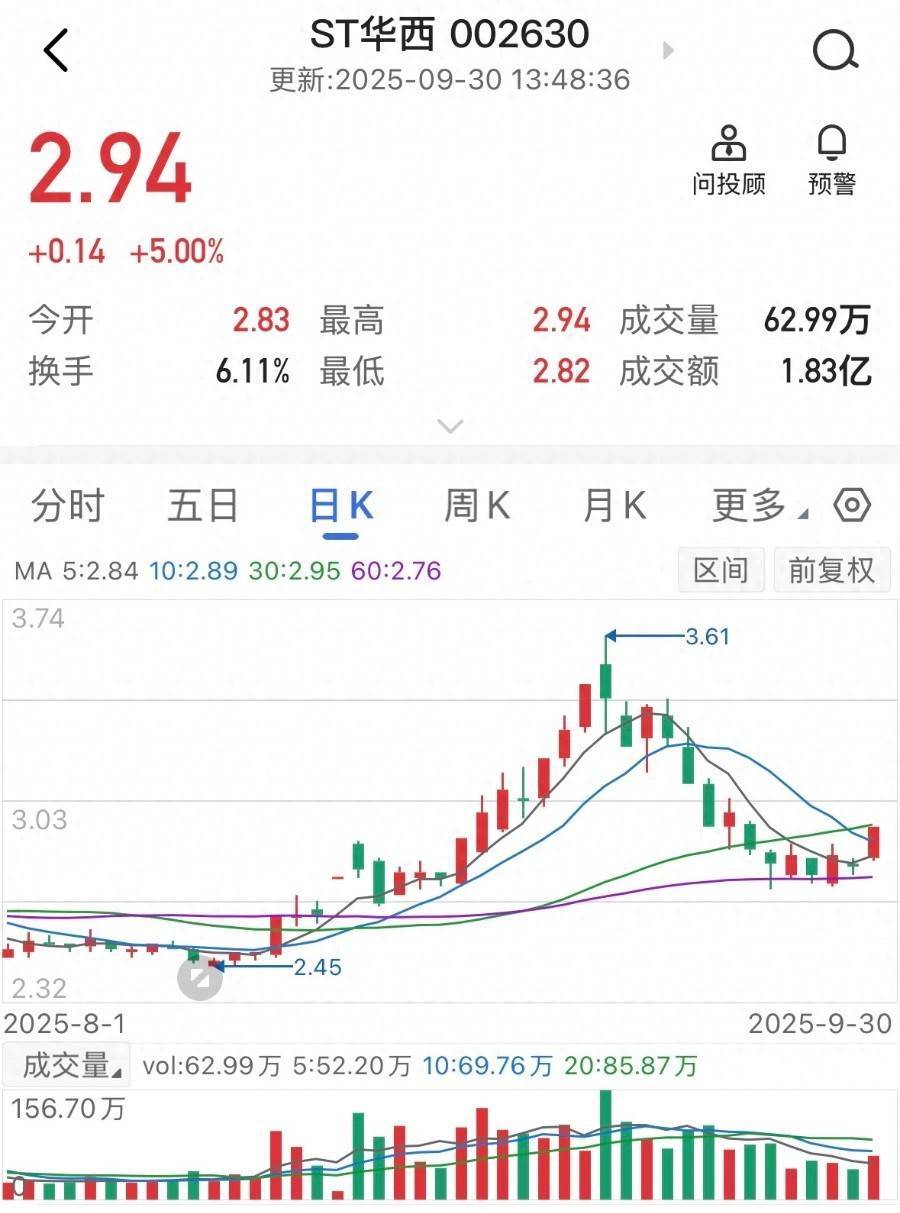 10.ST华西(002630):2025年01月25日至2025年04月25日历间买入,且在2025年4月26日及之后卖出或执有。