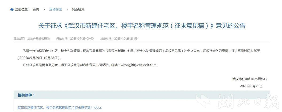 湖北日报讯(记者杨文漪)为进一步递次新建住宅区及楼宇定名处罚,武汉市近日发布《武汉市新建住宅区、楼宇称号处罚递次(征求倡导稿)》,面向社会公开征求倡导。该倡导稿对楼盘定名建议了一系列明确条件开云「中国」Kaiyun官网登录入口,旨在递次武汉市新建住宅区、楼宇称号处罚。