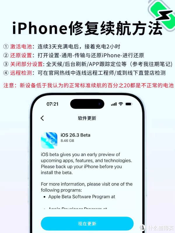 • 退却升级:电板健康<70%的老机型,升级后可能因硬件负载加剧导致续航崩盘。